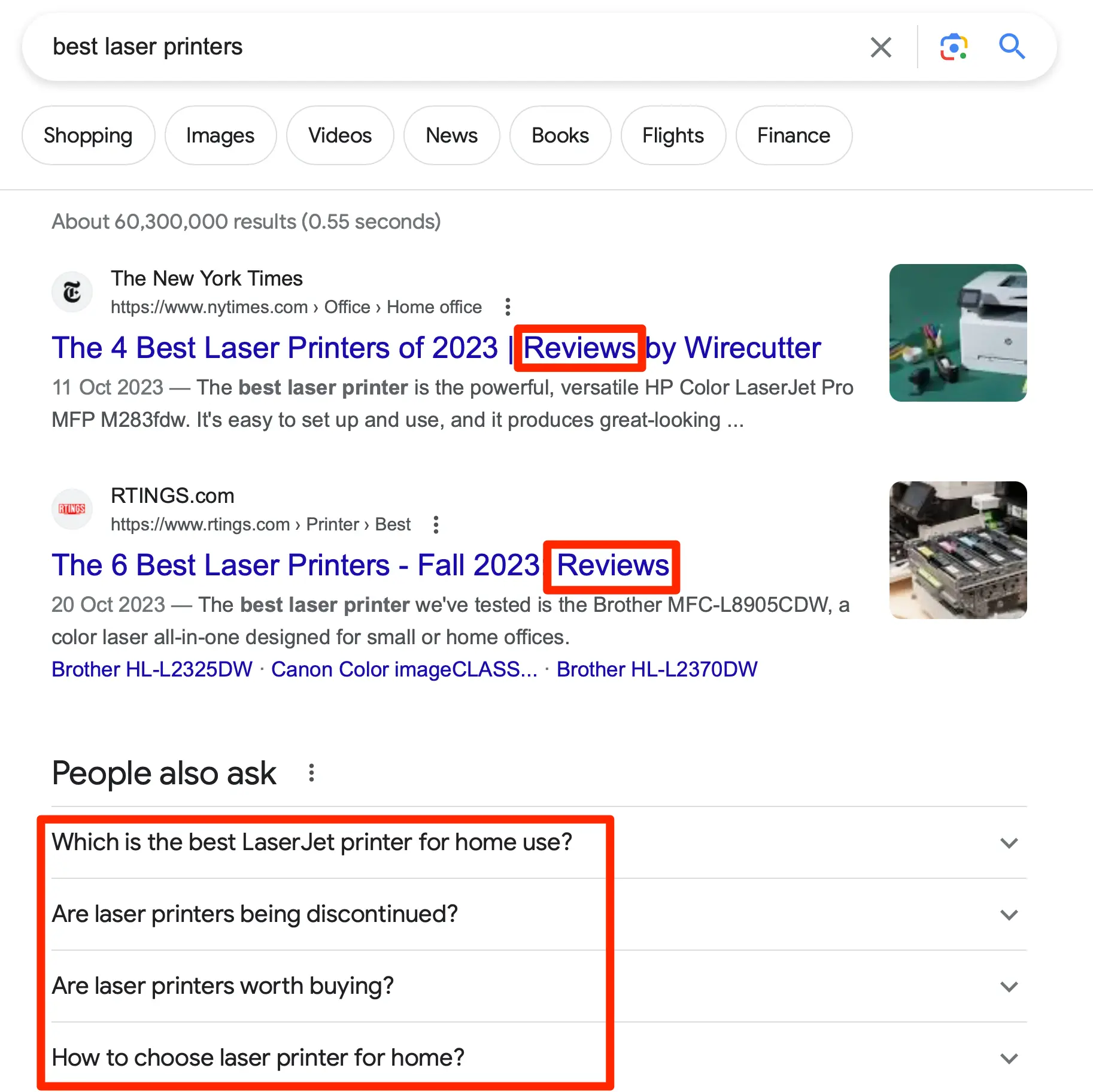 For example, someone searching for "best laser printers" is looking for a list of the best printers to buy.